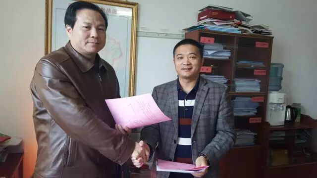 莲花县副县长朱白明和福建莆田投资樱禅谷公司的陈桂平合影留念